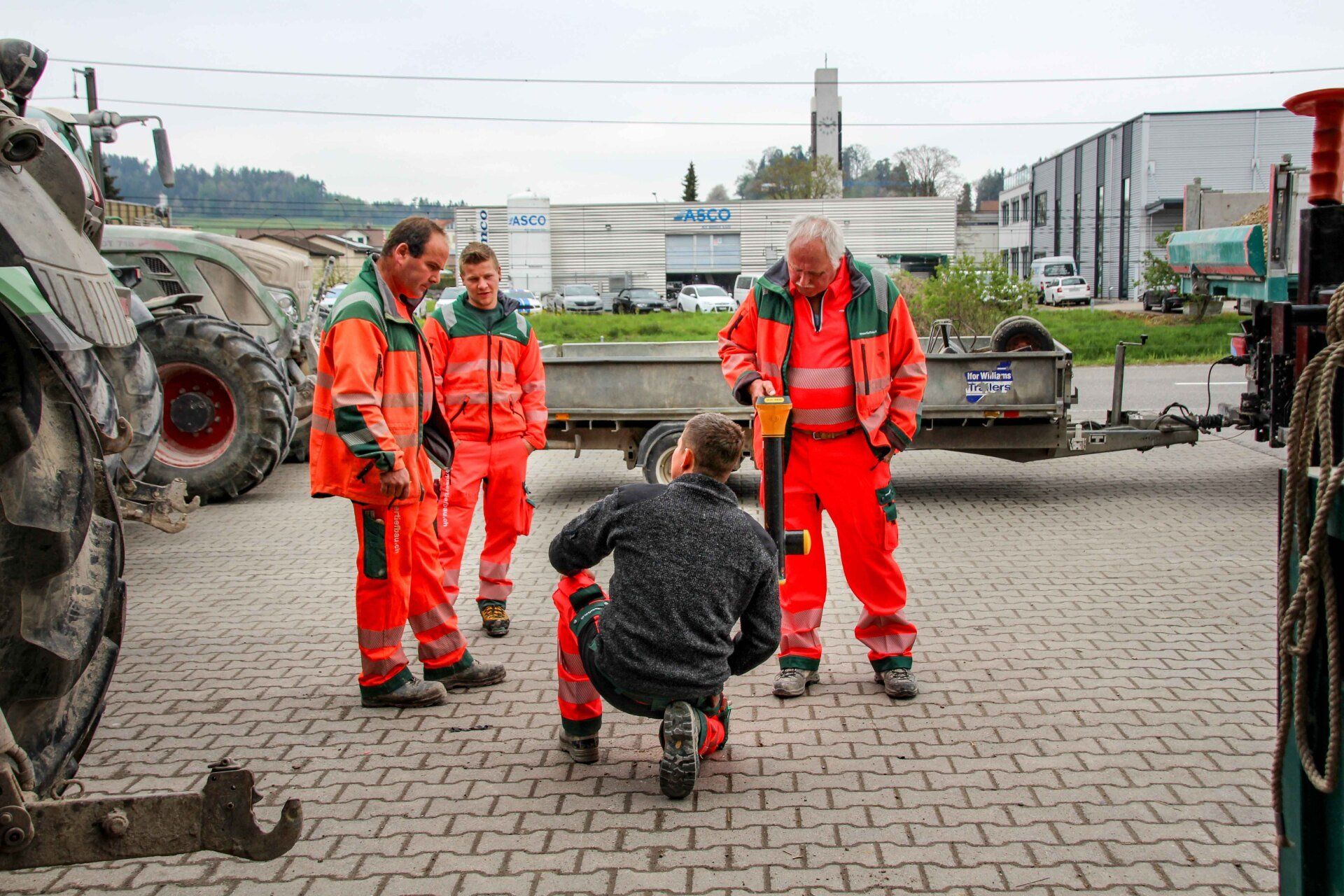 Nebst den Einführungen in unsere neuen Maschinen (Liebherr 918, Fendt 942, Fuso und Lindner), gab es viele interessante Posten zu besuchen. Externe Fachpersonen gaben uns Auskunft über Mauerabdichtung, Entwässerungsrinnen, Erdraketen und Rammvortrieb sowie Lasertechnik. Ebenfalls stand ein Update zum Rapportwesen auf dem Programm.